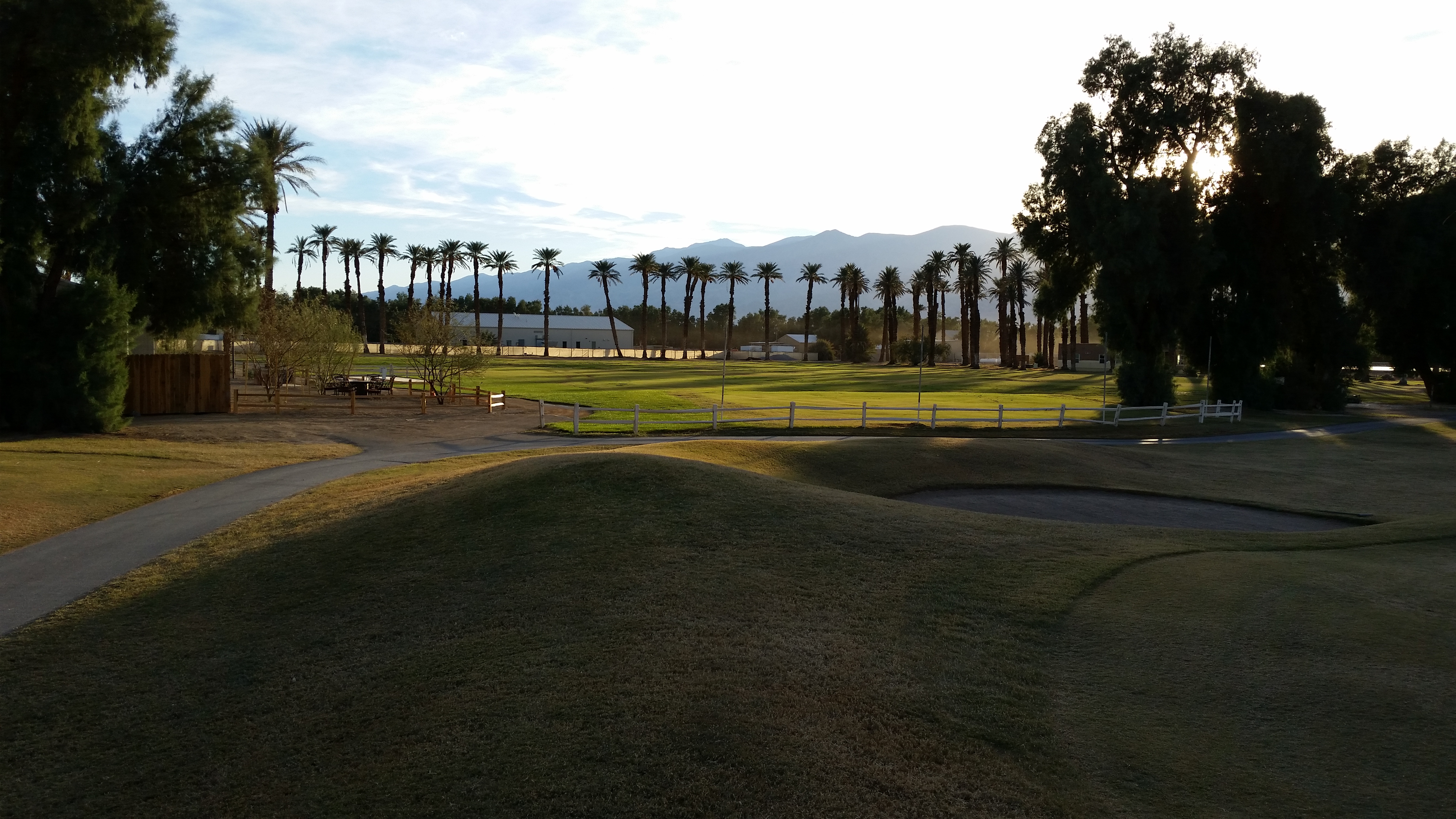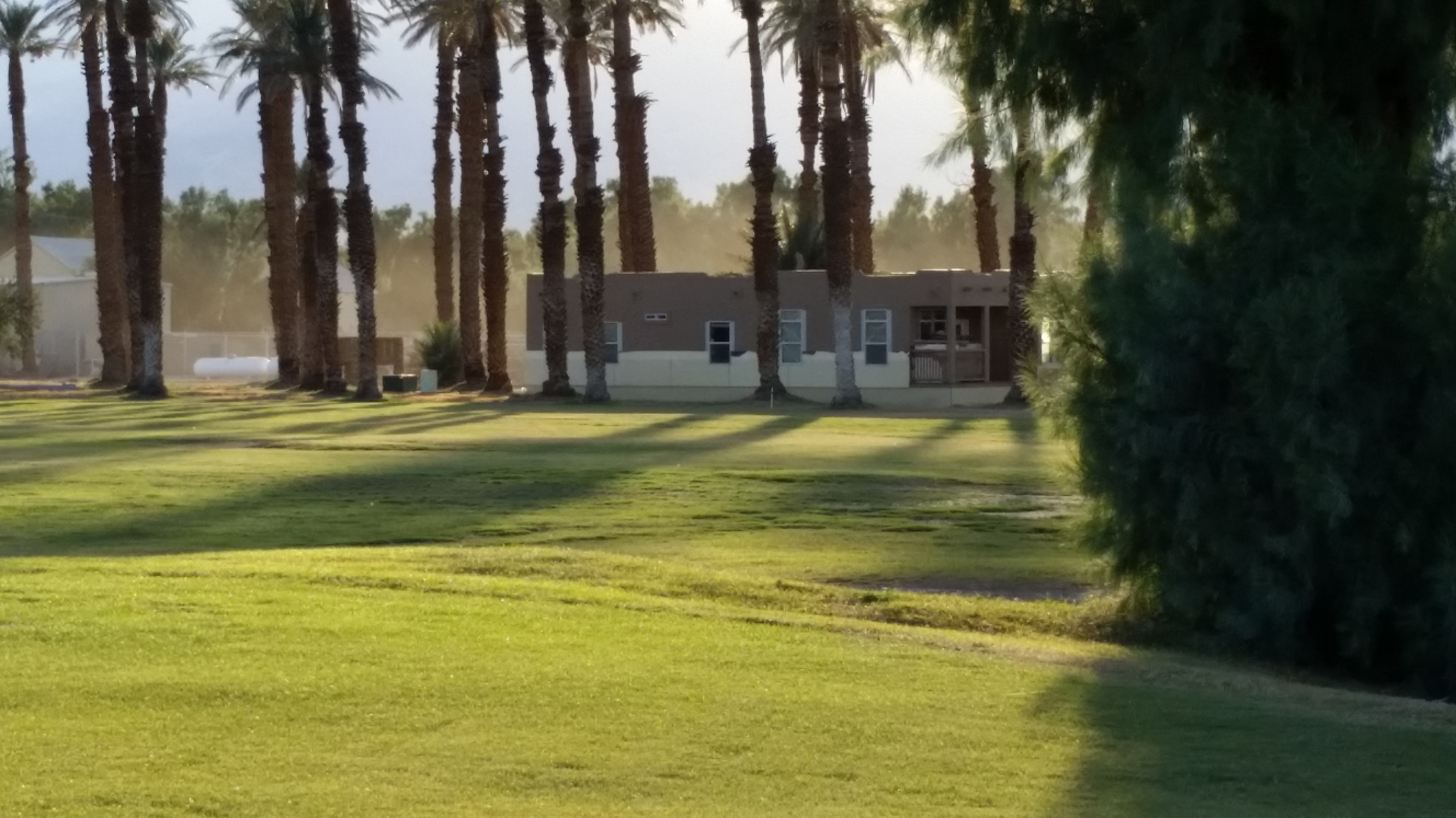 Left half of driving range. Building to the left (replacing the gravel parking area) is the Date Grove Diner.